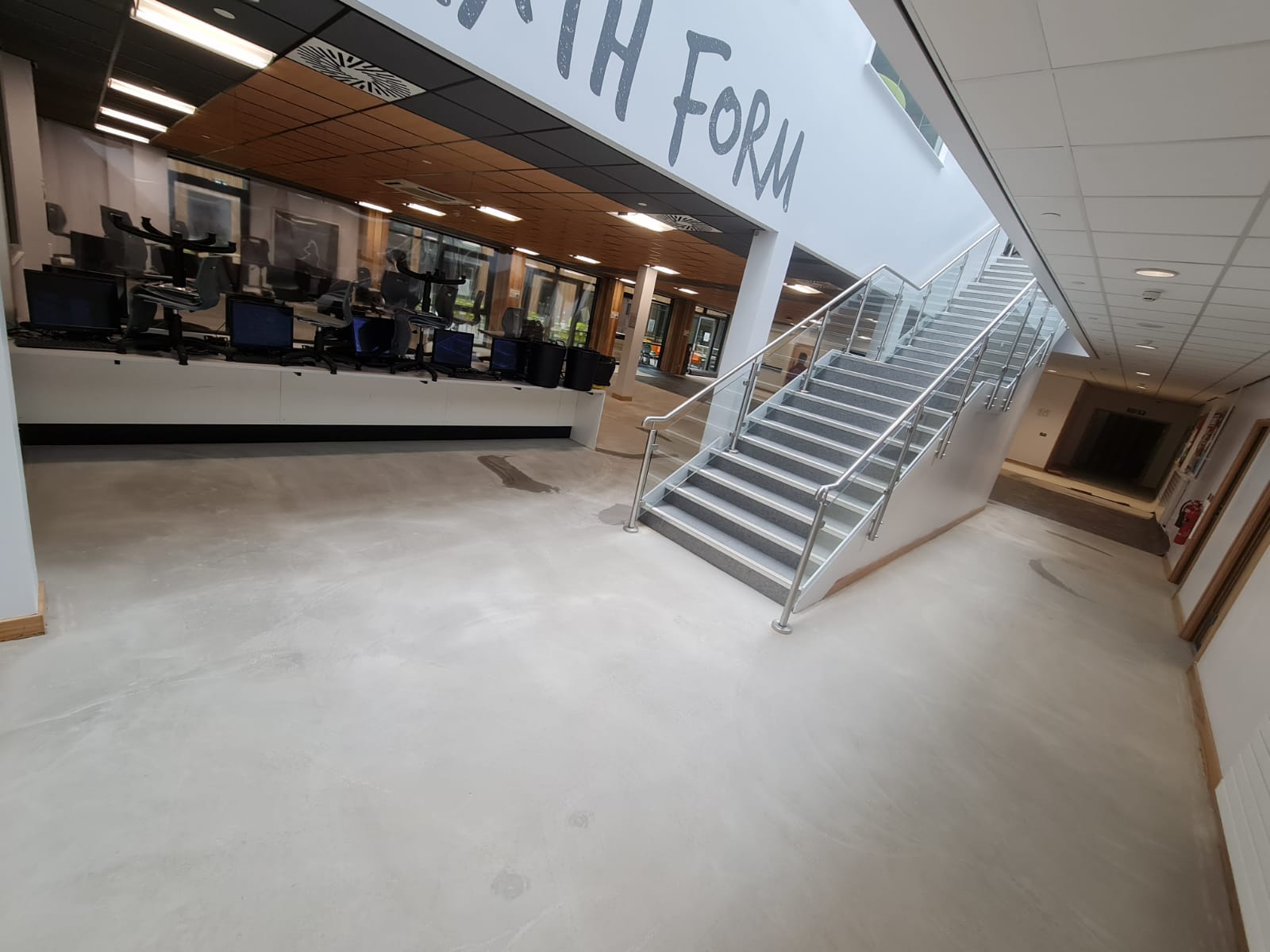 Installed Forbo Sarlon vinyl sheet using concrete colouration